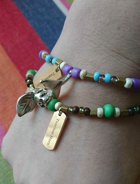 Looking back through old files, I found a screenshot of a flash game that my dad’s friend made for me. In the Heroic Tourism game, you move the passport left and right to save monkeys from shooting poachers. I also found photos of pledge bracelets that I created to be a gentle reminder of travellers’ commitment to protect forests and oceans in their travels. These were inspired by the beaded bracelets I collected from national parks across South Africa and were repurposed from second-hand jewellery. I was trying to engage people in my cause in as many different engaging ways as possible.