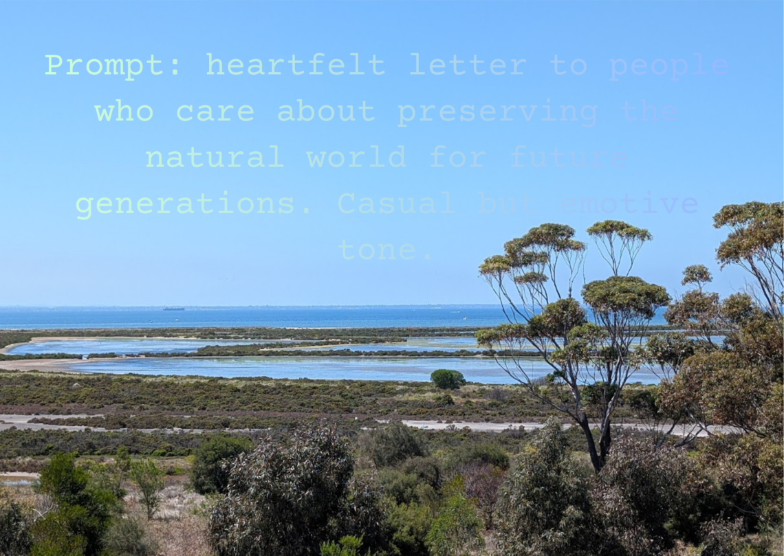 It is for the societal pressures and colonial expectations that I need not mention the water or energy use of AI in this letter to you. Though these extreme resource usages are not in line with Lonely Conservationist values or even the values of Earth Carer Care, we cannot condemn the usage of a tool for those who may have been encouraged or pressured to use it for the prosperity of their career in times where their work would otherwise not be considered. As a native English writer and speaker, I could not travel to India and write academic papers or even casual blogs without at the very least using a translator app, which would definitely botch the grammar and miss local tones and colloquialisms. Don’t get me wrong, it’s not the players I am annoyed at, it’s the game.